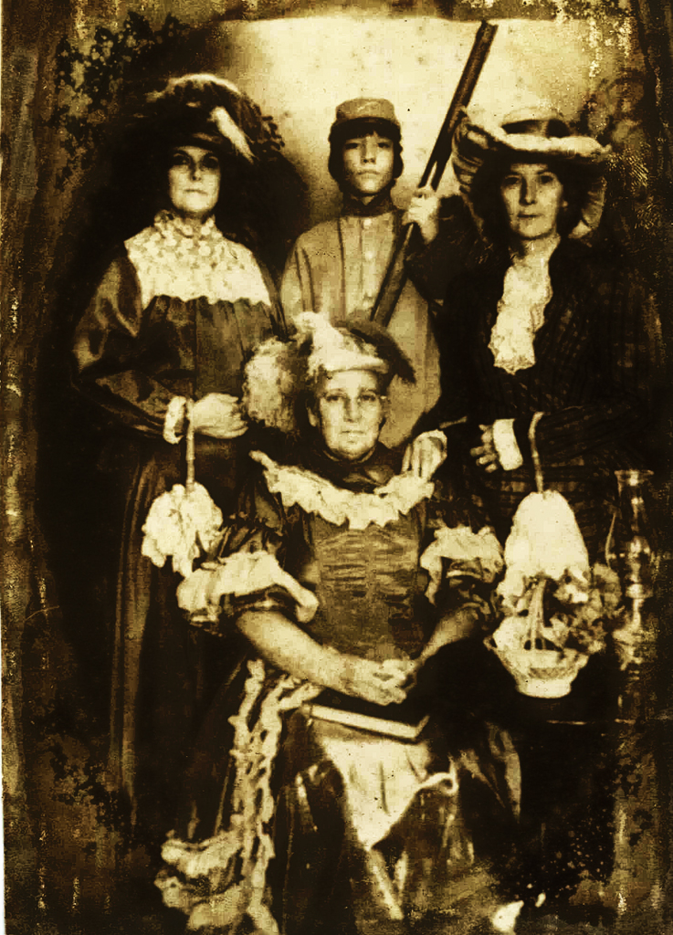 I do remember the laughter, nearly hysterical, culminating when I, the dashing young gentlemen, produced my trusty pocket knife, and gallantly cut my grandmother out of the costume dress you see her posing in. If you know any of these ladies, you can imagine how funny it was.